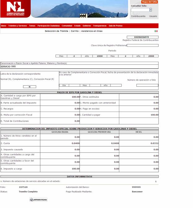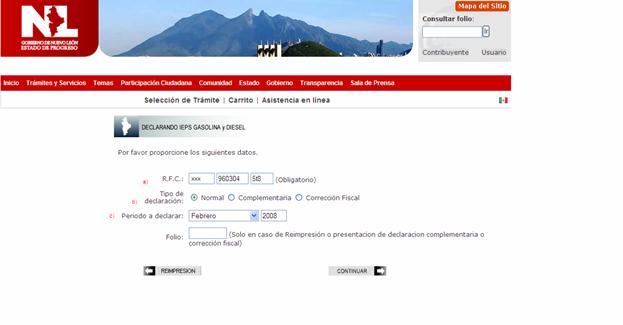 presentación de Declaración de IEPS, cuotas de gasolina y diesel. |