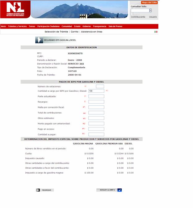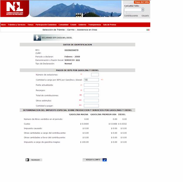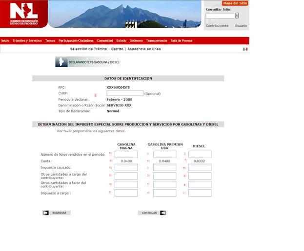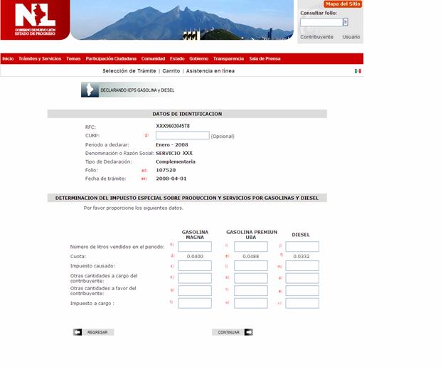correspondientes a el período a declarar. d) Cuota gasolina Magna e) Cuota gasolina Premium f) Cuota Diesel (pantalla