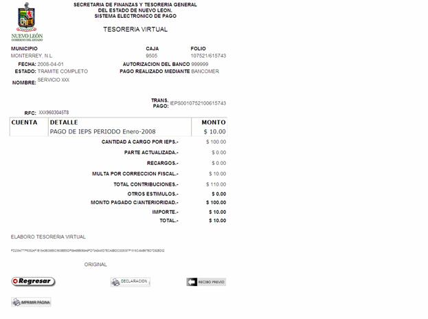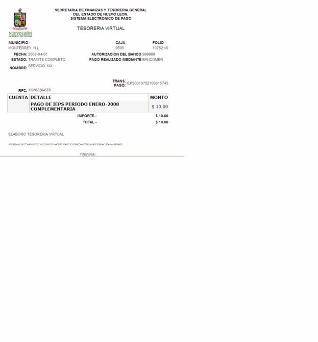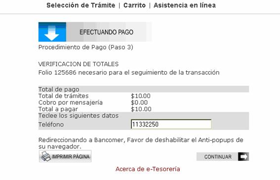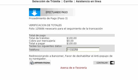 transacción (importante tomar Nota del Folio), se muestran los totales a